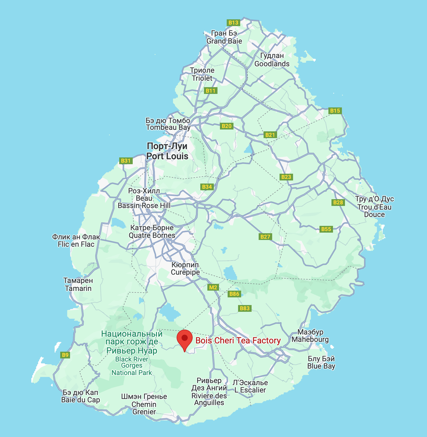 Welcome ice-tea, Ochéri spring water, Bois Cheri tea and coffee